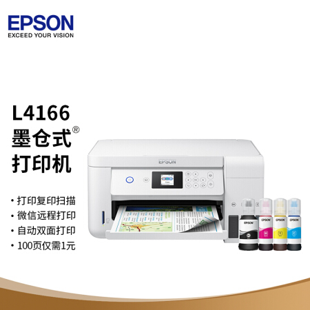 愛普生(EPSON)墨倉式品質款L4166(優雅白) 微信打印/無線連接 打印復印掃描一體機