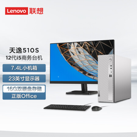 聯想 Lenovo 天逸510S英特爾酷睿i5個人商務臺式機電腦整機 12代i5-12400 16G 1T+256G SSDwifi win11 23英寸